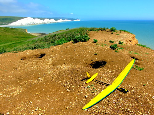 Newhaven is a good spot for cliff soaring. The cliffs are about 50 metres high and the best part of a mile wide. The lift is smooth and strong when the wind is from the south, and the cliffs can also usually be used when the wind is from the southwest or southeast. If you’re afraid of heights or of losing your model out to sea, this might not be the place for you. But in reality cliff soaring is more a psychological problem than an actual hazard, since it’s easy to soar over the land and avoid going much out to sea. Just make sure your battery is charged and your plane is in good shape.